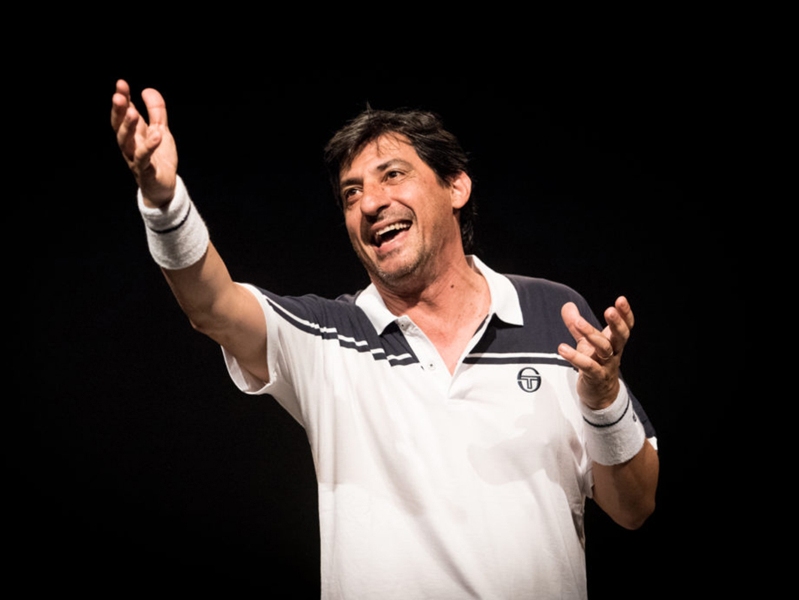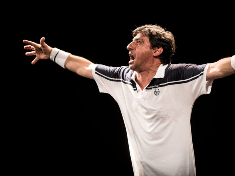 Lo spettacolo, ironico e profondo, una metafora sulla vita, è giocato sull’attesa di una partita, che non ci sarà mai, tra un malinconico tennista e il più grande di tutti il leggendario Roger, che in qualche modo è anche Dio.