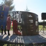 L’area verde è ora caratterizzata da un’aiuola con una stele in lamiera di acciaio corten e da una nuova alberatura al suo interno, un cedro del libano. Si forma così una struttura unica che va a rappresentare nell’albero la linfa vitale che continua e nella struttura che lo avvolge il concetto della memoria e della protezione.