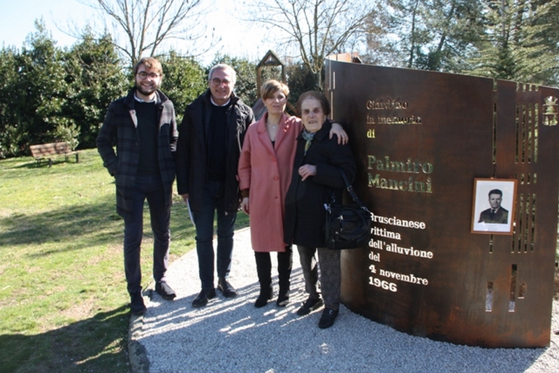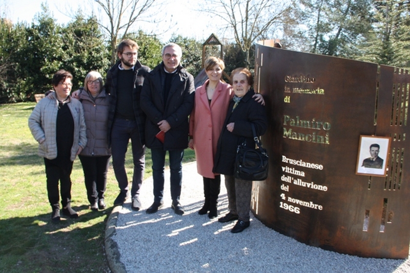 Da oggi, 16 febbraio 2019, a Brusciana, frazione valdelsana del Comune di Empoli, si trova il giardino ‘Palmiro Mancini’. In mezzo al pratino, fra i giochi per i bambini e il campetto da calcio, a due passi dalla ferrovia e dalla Casa del Popolo, un elemento scultoreo che ricorda l’unico empolese vittima dell’alluvione del 1966.
