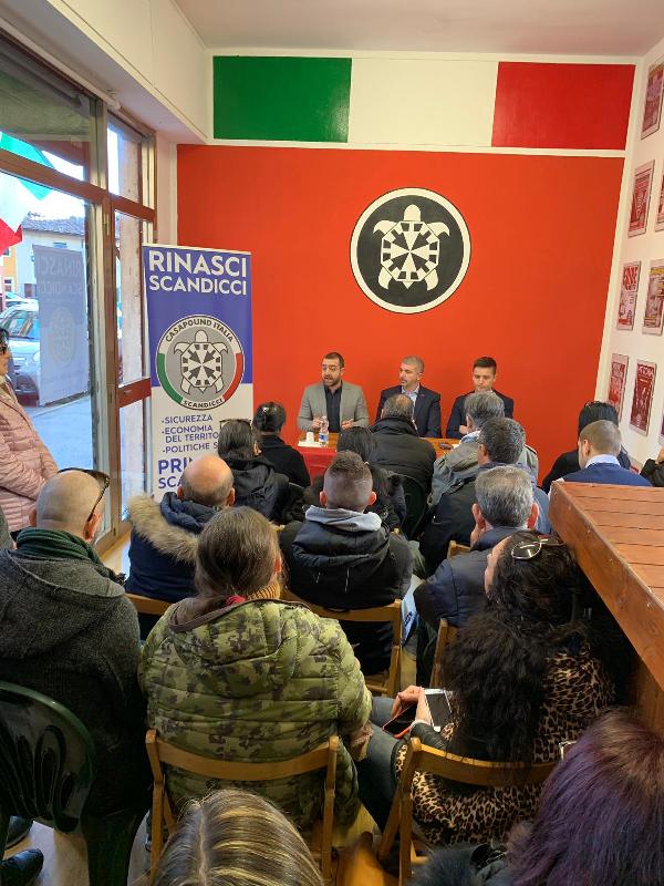 È stato poi il turno dell'appena annunciato candidato a sindaco di Scandicci, Matteo Daddi, che ha esordito con un duro attacco all'amministrazione Fallani, accusandola di aver fallito su tutta la linea, occupandosi peraltro di tutti tranne che degli scandiccesi. Daddi poi non è stato tenero neppure con le opposizioni definendole “inesistenti, inconsistenti e contraddittorie". I cinque punti cardine del programma del candidato di CasaPound saranno cinque: politiche sociali a favore dei cittadini di Scandicci, a partire dall'introduzione del mutuo sociale, sicurezza e lotta al degrado, aiuto all'economia locale e supporto al distretto industriale pellettiero, riqualificazione del territorio con un migliore collegamento con le colline che passi anche attraverso il potenziamento del trasporto pubblico e, infine, politiche giovanili per evitare che Scandicci si trasformi diventato in un dormitorio, con la creazione di un consiglio comunale per i giovani con tanto di budget e con l'individuazione di un'area da destinare alla movida lontano dalle zone residenziali. Daddi, poi, ha rivendicato l'occupazione del consiglio comunale di una settimana fa, prima volta a Scandicci, a supporto di una famiglia italiana priva di aiuti. Famiglia che non ha ottenuto negli scorsi mesi alcuna risposta né dal comune né dai singoli consiglieri. Daddi ha concluso sostenendo che “durante l'occupazione ho guardato in faccia tutti i consiglieri ed ho visto nei loro occhi paura. La tipica paura di vedere in consiglio comunale CasaPound, perché noi, a differenza loro, abbiamo idee, progetti e, soprattutto, vogliamo riprenderci il destino della città”