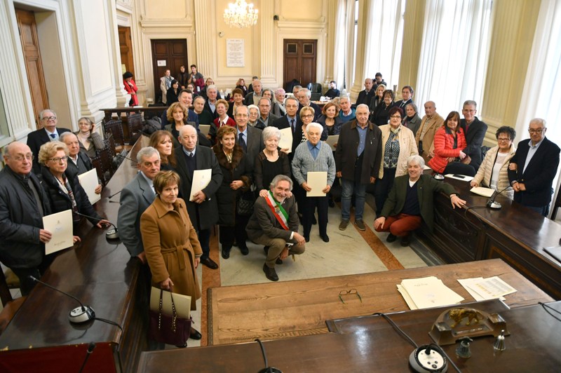 Di seguito le coppie premiate in ordine alfabetico, seguendo il cognome della signora (non tutte erano presenti): nel loro numero massimo erano ben 49. Ad ognuna arriverà comunque una pergamena-riconoscimento da parte del Comune.