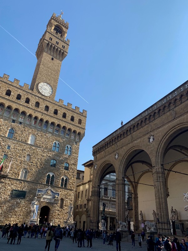 Un uomo sul bordo degli Uffizi: nuova statua che si affaccia su piazza della Signoria