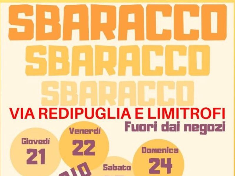 “Sbaracco” è uno degli eventi più attesi da tanti clienti e cittadini interessati. E’ promosso e realizzato dall’associazione via Redipuglia e limitrofi con il patrocinio dell’Amministrazione Comunale.