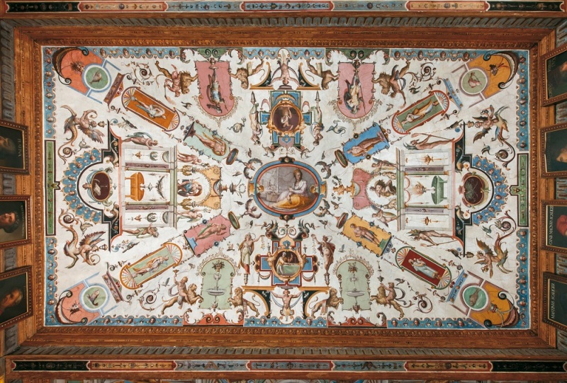 Le decorazioni del museo “a grottesca”, effettuate nella seconda metà del ‘500 ( Il primo corridoio degli Uffizi, quello sul lato Est del primo piano, fu dipinto fra il 1579 e il 1581 da Antonio Tempesta, inizialmente, poi da Alessandro Allori e dalla sua bottega) recuperavano tratti e stilemi dall’antichità romana: i soggetti degli affreschi sono apparentemente sfuggenti, ma ricchi di simbologie complesse e di episodi curiosi, protagonisti dei quali sono figure appunto buffe, bizzarre, mostruose, appunto grottesche. Il tutto, però, raffigurato con un grande rigore ed equilibrio compositivo e geometrico. Per la prima volta la storia, la genesi e la tecnica di queste suggestive e misteriose pitture, molto in voga nel Rinascimento, viene raccontata in un libro, 'Le Grottesche degli Uffizi' (Giunti , 416 pagine): curato dalla studiosa Valentina Conticelli con un contributo di Francesca De Luca, il volume, ricco di dettagli e di immagini inedite a grande formato, ripercorre la storia della decorazione del complesso architettonico e rivela i segreti significati di ogni campata, conducendo il lettore in un mondo immaginario, sospeso tra realtà e mitologia. 'Le Grottesche degli Uffizi' verrà presentato sabato pomeriggio alle ore 16 nell'auditorium Vasari della Galleria: oltre all'autrice interverranno all'incontro il direttore del complesso Eike Schmidt, l'ex ministro dei Beni culturali ed ex direttore dei Musei Vaticani Antonio Paolucci e la storica dell'arte Sonia Maffei.