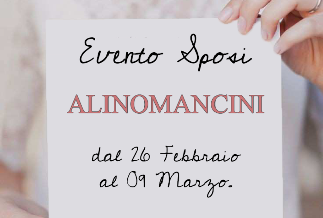 In vista del tuo matrimonio, fatti sedurre da Evento Sposi, la grande promozione di Alino Mancini a Empoli (via Segantini, 1) attiva dal 26 febbraio al 9 marzo. Potrai scegliere comodamente tra tante proposte gli anelli per dire il fatidico sì. Alino Mancini e il suo staff saranno lieti di consigliarti tra le varie opportunità.