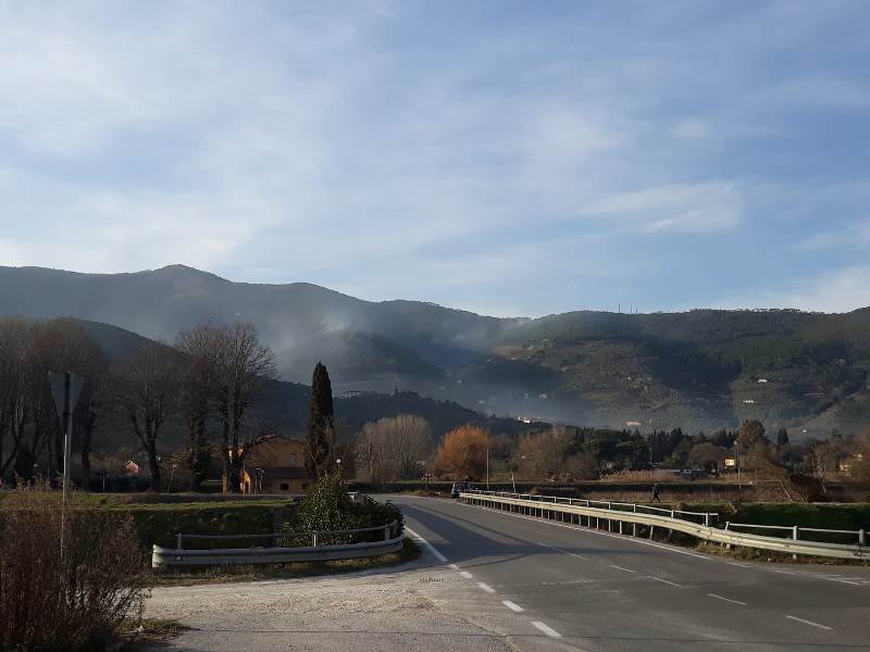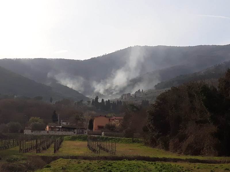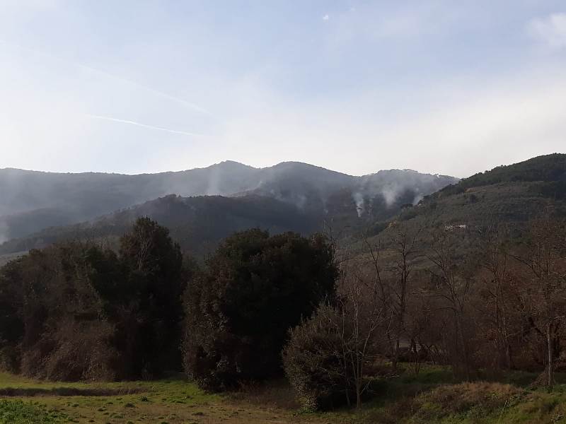 A Madonna di Carpineta, Comune di Bagni di Lucca, oltre alle squadre di terra, sta intervenendo un elicottero da Lucca, che lavorerà fino al tramonto. La zona è impervia, sono due i fronti attivi, di circa 300 metri ciascuno.