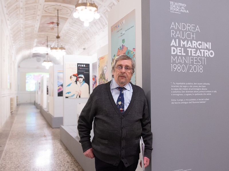 60 manifesti, libri, opuscoli, scenografie, proiezioni: dal 27 febbraio al 14 aprile la Fondazione Teatro della Toscana celebra nella Sala Oro del Teatro della Pergola l’opera di Andrea Rauch dedicata alla vita del teatro. La mostra Andrea Rauch. Ai margini del teatro – Manifesti 1980-2018, curata da Walter Sardonini, responsabile dell’identità visiva della Fondazione, rivela tutta la forza con cui Rauch riesce a sottolineare l’importanza dei testi, della scena, con “la spada” dell’autore, non con “il bisturi” del decoratore. È un acrobata dello spirito e della penna, in una continua opera di intellettuale, l’uomo di cultura sempre a guidare la mano dell’artista.