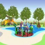 Nell’altra parte ci saranno giochi adatti a bimbi da 3 a 11 anni: un gioco composito con torri, scivolo, ponte con camminamento in rete; salita, pertica, tunnel, scala, rete di arrampicata.