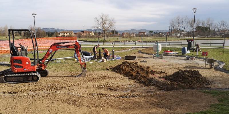 Da qualche giorno la ditta incaricata ha delimitato l’area di intervento e sta intervenendo: se non ci saranno intoppi dovuti al maltempo venerdì 1 marzo sarà completato il getto di cemento e quindi l'installazione dei giochi. L’area ludica sarà caratterizzata da una gomma colorata antitrauma. Per la posa di questo materiale dovranno trascorrere almeno 15 giorni per permettere la maturazione del conglomerato cementizio.