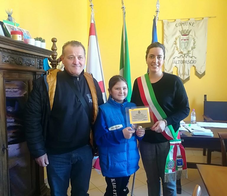 Un impegno sportivo molto ben avviato, che non è passato inosservato: il sindaco, Sara D'Ambrosio, infatti, ha ricevuto Giorgia in Comune per consegnarle la targa.