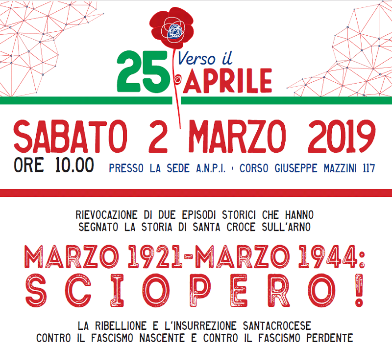 Tutte le iniziative si svolgeranno presso la salatta “e questo è il fiore….” della sede Anpi di Santa Croce sull’Arno in Corso Giuseppe Mazzini n. 117.