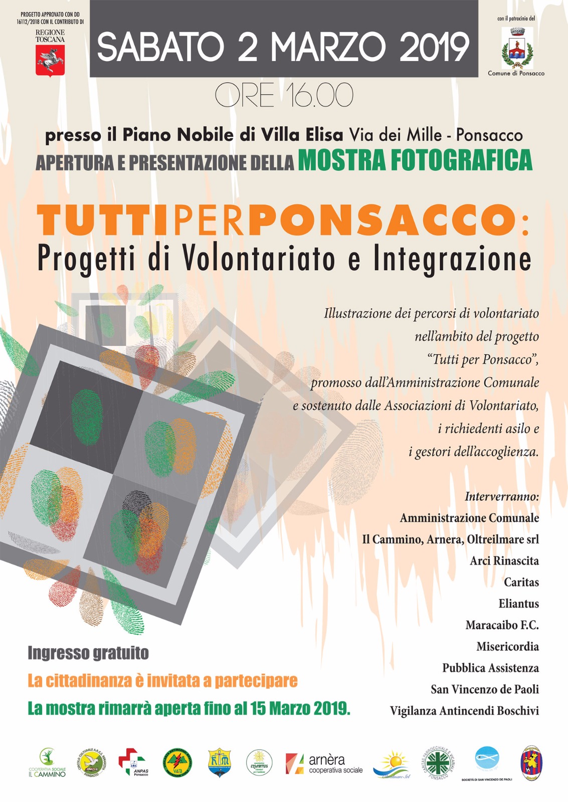“Tutti per Ponsacco”, il progetto del quale verrà illustrata la storia e le sue sfaccettature, nasce da un lavoro intrapreso dall’Amministrazione Comunale nel corso degli anni e arrivato, nel 2017 alla firma di un protocollo d’intesa tra il Comune, le Associazioni di Volontariato locali e i gestori dell’accoglienza, nello specifico le cooperative Arnera e Il Cammino e Oltreilmare srl. Lo scopo del progetto è stato quello, da un lato, di offrire ai richiedenti asilo la possibilità tangibile di entrare in contatto con la comunità ospitante e di impegnarsi in attività di pubblica utilità, dall’altro di arricchire il capitale umano che contraddistingue il mondo del volontariato.