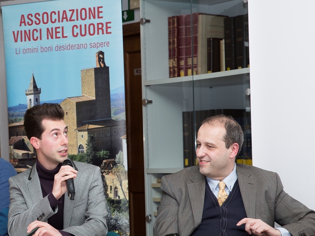 A illustrare la sua tesi, in una Biblioteca Leonardiana piena, il professor Marco Cipollini, saggista, poeta, redattore, nonché fra i fondatori di Erba d'Arno. Accanto a lui, durante la serata è intervenuto anche Samuele Lastrucci, direttore musicale del Da Vinci Baroque Festival, che con il suo supporto ha inaugurato la sua collaborazione con l'associazione Vinci nel Cuore come consulente per la parte musicale per tutta la durata della rassegna.