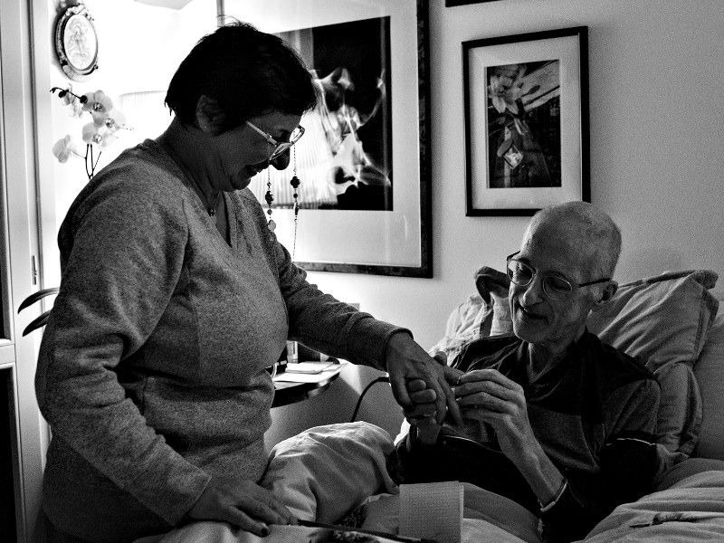 Quando gli hanno comunicato che gli sarebbero rimasti pochi mesi di vita, ha fatto l’unica cosa che ha sempre fatto nella vita: scattare fotografie per testimoniare. E così ha scelto di immortalare se stesso negli ultimi giorni, il declino inesorabile del suo corpo ma anche il sollievo per gli ultimi piaceri: la gita al mare in una giornata di sole, i pranzi con gli amici intorno al suo letto, la lezione via skype dall’hospice a 300 studenti e, soprattutto, il matrimonio con Barbara, con lo scambio degli anelli mentre stava disteso sul letto di casa con le ultime energie.