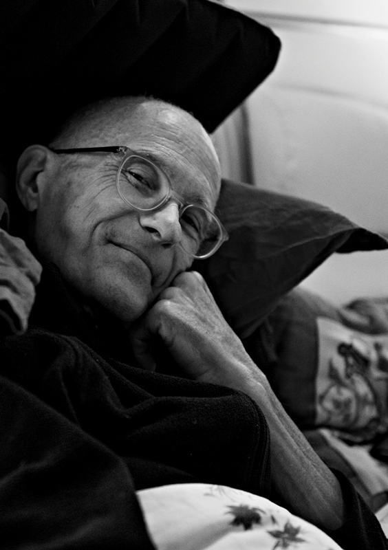 Quando gli hanno comunicato che gli sarebbero rimasti pochi mesi di vita, ha fatto l’unica cosa che ha sempre fatto nella vita: scattare fotografie per testimoniare. E così ha scelto di immortalare se stesso negli ultimi giorni, il declino inesorabile del suo corpo ma anche il sollievo per gli ultimi piaceri: la gita al mare in una giornata di sole, i pranzi con gli amici intorno al suo letto, la lezione via skype dall’hospice a 300 studenti e, soprattutto, il matrimonio con Barbara, con lo scambio degli anelli mentre stava disteso sul letto di casa con le ultime energie.