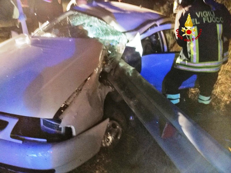 Un'auto con due persone a bordo per cause in corso di accertamento è finita contro il guardrail.