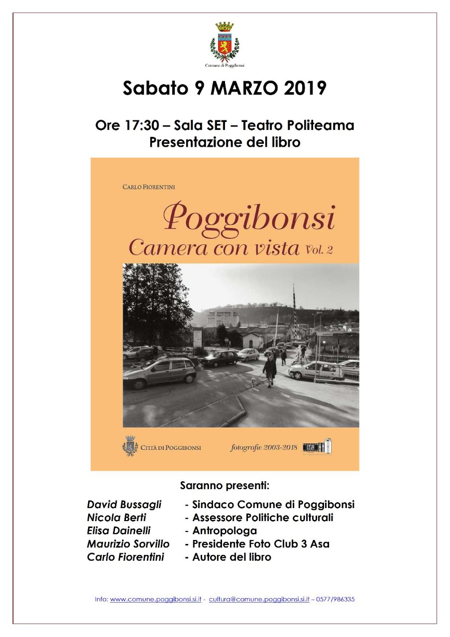 Un appuntamento da non perdere per tutti i poggibonsesi, e non solo. Sabato prossimo, 9 marzo, sarà presentato il nuovo libro di fotografie “Camera con vista”, a firma di Carlo Fiorentini. Dopo il volume numero uno prosegue il racconto fotografico della città che prende il via laddove si interrompeva il precedente libro e arriva fino ai giorni nostri. Il periodo storico documentato è quindi quello che va dal 2003 al 2018.