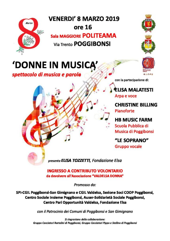 L’ingresso è a contributo volontario da devolvere all'associazione Valdelsa Donna. L’iniziativa è promossa da SPI-CGIL Poggibonsi-San Gimignano e CGIL Valdelsa, sezione Soci Coop Poggibonsi, Centro Sociale Insieme Poggibonsi, Auser Solidarietà Sociale Poggibonsi, Centro Pari Opportunità Valdelsa, Fondazione Elsa con il Patrocinio dei Comuni di Poggibonsi e San Gimignano.