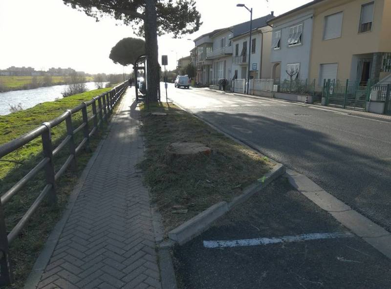 Lavori asfalto Sp 106, abbattimento di alcuni pini in viale Montagni