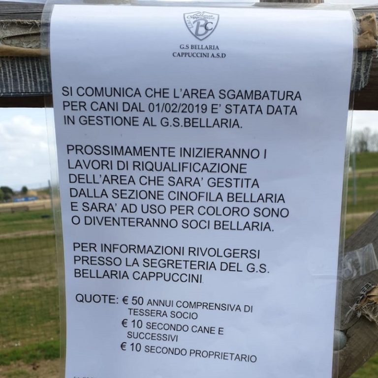 Apprendiamo che lo sgambatoio di proprietà comunale ubicato in zona Bellaria è stato dato in gestione alla Soc. Bellaria.