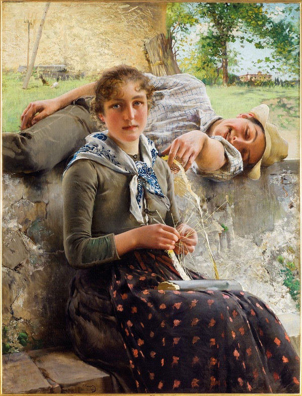 Quest'anno le Gallerie degli Uffizi celebrano l’8 marzo con una mostra dedicata all’impegno professionale e al talento delle donne in Italia, tra Ottocento e Novecento. I termini cronologici si riferiscono a due eventi precisi: l’iscrizione di alcune lavoratrici alla Fratellanza Artigiana nel 1861, e il premio Nobel conferito a Grazia Deledda nel 1926 per il romanzo Canne al Vento. Sono due date simboliche, che tuttavia segnano la storia di un riscatto dell’immagine femminile e del ruolo pubblico delle donne nel periodo post-unitario. Opere d’arte, fotografie ed oggetti illustrano le diverse forme di operosità dell’universo muliebre, descrivendo energie e risorse spesso non riconosciute. Le contadine ad esempio, dedite alle pratiche agricole collegate al ciclo delle stagioni dovevano anche occuparsi degli animali nella fattoria. E nei momenti di sosta dal lavoro più duro, rammendavano, lavoravano a maglia o intrecciavano la paglia, come si può vedere in numerosi dipinti di Silvestro Lega esposti in galleria.
