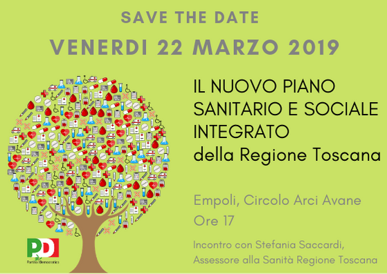 La Regione Toscana avrà un nuovo piano sanitario e sociale integrato. Sarà presentato a Empoli, al Circolo Arci di Avane, venerdì 22 marzo alle ore 17 alla presenza dell'assessore alla sanità per la Regione Stefania Saccardi.