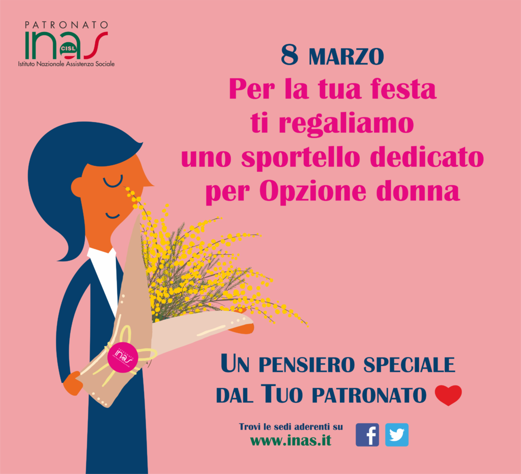 Una giornata speciale pensata per le donne in occasione dell’8 Marzo. A organizzarla è l’Inas, il patronato della Cisl, che nelle sue sedi attiverà uno sportello dedicato alla cosiddetta ‘opzione donna’.