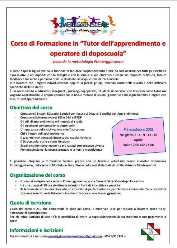 Al termine del corso sarà consegnato un attestato di partecipazione e per chi fosse interessato, c'è la possibilità di essere inseriti nella lista dei tutor che collaborano con Pomerigginsieme.
