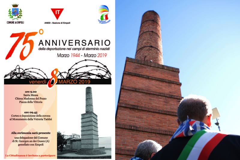 Domani, 8 marzo 2019, ricorre il 75° anniversario della deportazione nei campi di sterminio nazisti di 55 cittadini di Empoli. Alle 9 nella chiesa della Madonna del Pozzo di piazza della Vittoria verrà celebrata la Santa Messa, officiata dal proposto Don Guido Engels; alle 9.45 partirà il corteo fino a raggiungere il Monumento della Vetreria Taddei, in via Fratelli Rosselli, dove l’amministrazione deporrà una corona di alloro alla targa ricordo dei cittadini deportati