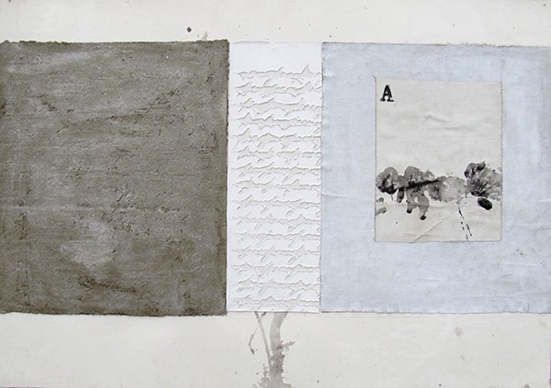 Dal Messico si torna in Italia dove scrittura e pittura si coniugano nell’opera di Alfredo Rapetti Mogol, che da Milano è uno degli artisti con più mostre all’attivo, e che dopo la collettiva sarà protagonista a La Fonderia con la sua personale nel mese di giugno. Grazie alla tecnica dell’impuntura le lettere conquistano il proprio spazio sulla tela in una contaminazione tra parola e immagine.