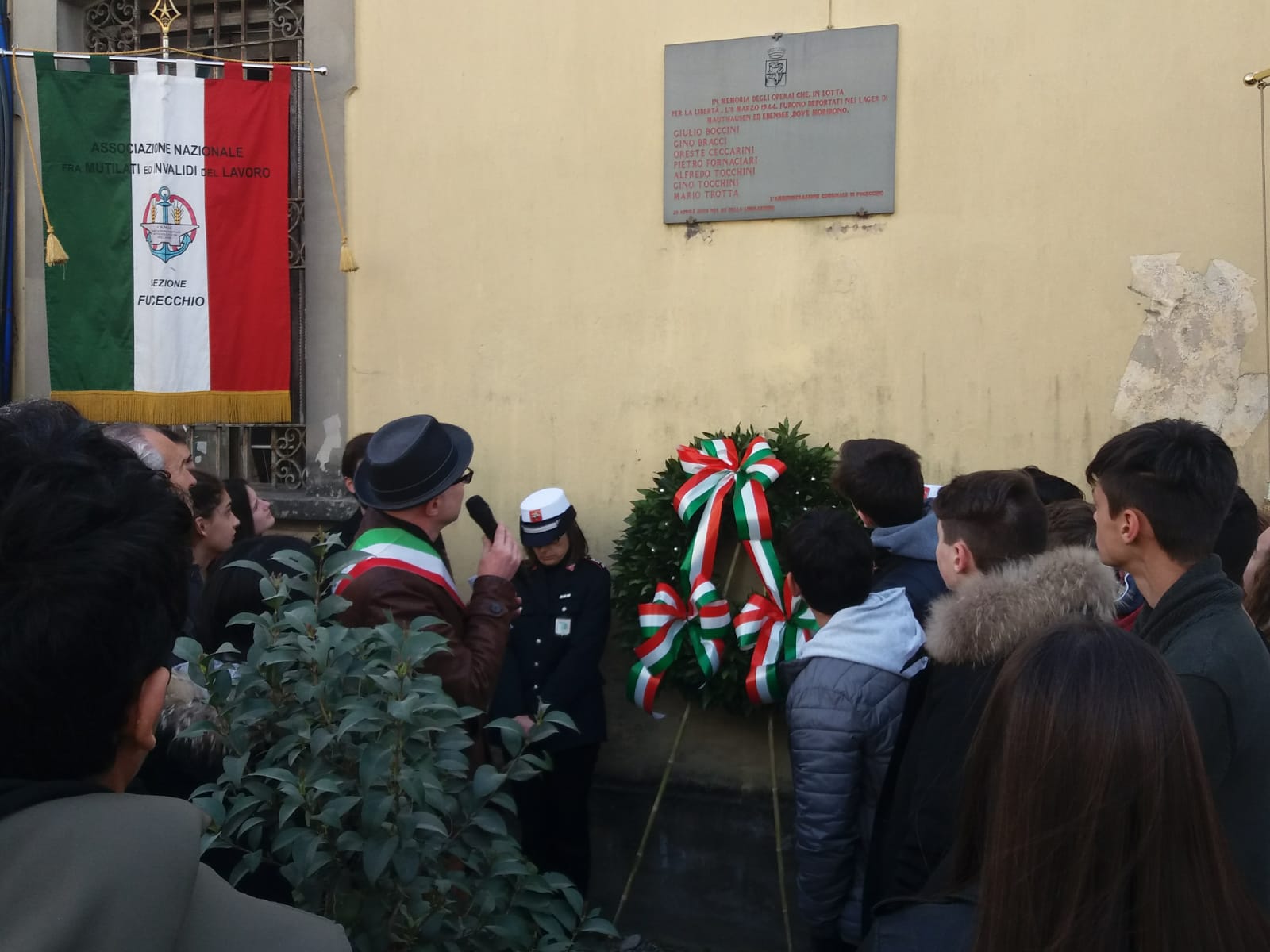 La cerimonia di questa mattina si è aperta con la deposizione della corona di alloro di fronte alla targa commemorativa in Via Dante. Dopo l’esecuzione del silenzio è intervenuto il sindaco Spinelli che ha ricordato i tragici fatti di 75 anni fa rivolgendosi in particolar modo agli studenti della Scuola media Montanelli Petrarca che da parte loro sono intervenuti con una lettura sull’importanza delle memoria storica. Grande partecipazione anche da parte delle associazioni locali: erano presenti l’Anpi, l’Aned, l’Associazione Nazionale Carabinieri, l’Anmil, l’Auser, la Pubblica Assistenza e lo Spi-Cgil.