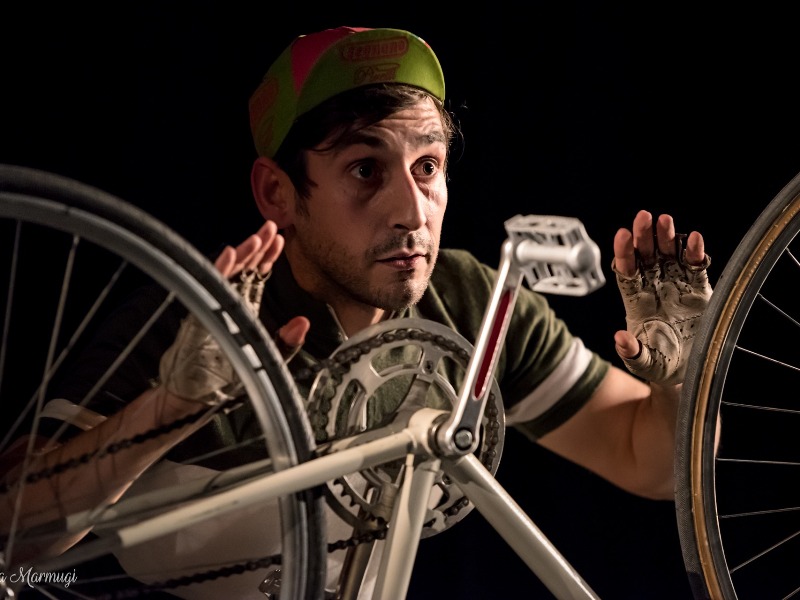È proprio questo percorso lo spunto che ha suggerito la struttura dello spettacolo, composto di “tappe” vittoriose ma silenti. Tappe dense di racconti, descritte attraverso gli occhi curiosi e attenti di un personaggio che si muove in un percorso geografico lungo le strade dell’Italia in guerra sulla via della solidarietà.