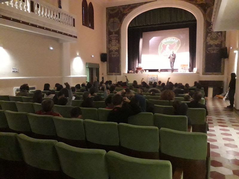 Ieri, 12 marzo, al Teatro della Misericordia di Vinci otto classi delle scuole medie del territorio comunale hanno incontrato Giuseppe Festa, acclamato autore di libri per ragazzi, nonché musicista e autore di diversi reportage sulla natura.