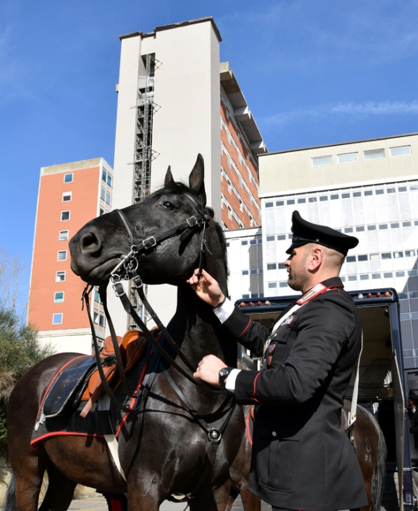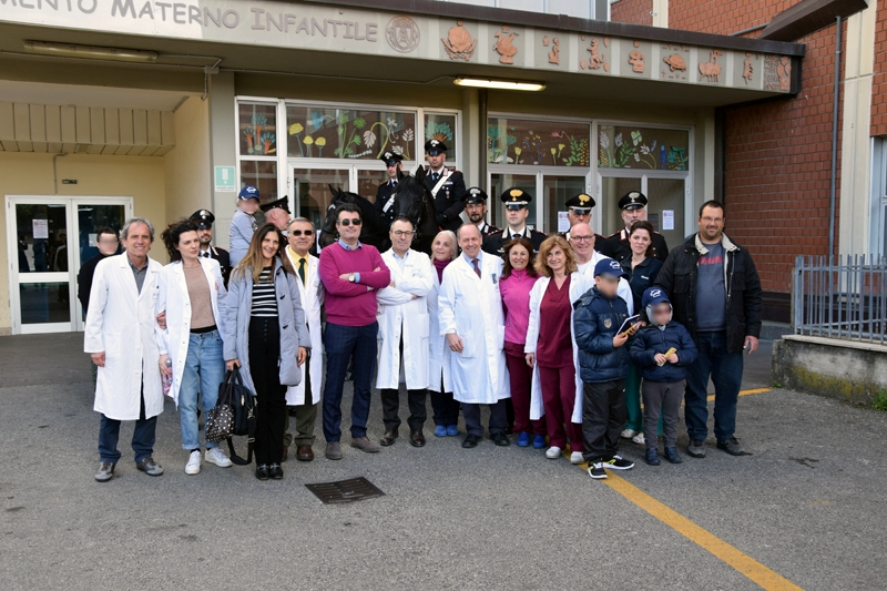 Piacevolissima sorpresa per i piccoli pazienti del Dipartimento Materno Infantile del policlinico Santa Maria alle Scotte. I militari del 4° Reggimento Carabinieri a cavallo di Roma, giunti a Siena per la manifestazione “A cavallo sulla pietra serena”, hanno fatto visita all’Azienda ospedaliero-universitaria Senese portando doni e gadget dell’Arma, regalando così un pomeriggio di giochi e spensieratezza per le bambine e i bambini ricoverati all’ospedale di Siena. «Si tratta di una iniziativa molto apprezzata dai nostri piccoli degenti che rinsalda ulteriormente il rapporto con l’Arma dei Carabinieri, sempre vicina e sensibile alle necessità dei bambini – ha sottolineato il direttore sanitario dall’Aou Senese, Roberto Gusinu, presente all’iniziativa -. Per noi è sempre una grande gioia assistere a questi eventi come già accaduto un anno fa quando il Reparto Carabinieri Biodiversità di Siena portò in corsia i cavallini di Monterufoli. Sono esperienze a forte impatto emotivo positivo per i nostri piccoli pazienti che, per alcune ore, possono quasi dimenticarsi di essere in ospedale».