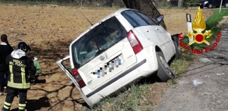 Una vettura per cause in corso di accertamento è andata ad urtare contro un albero, rimanendo in bilico sul ciglio della strada.