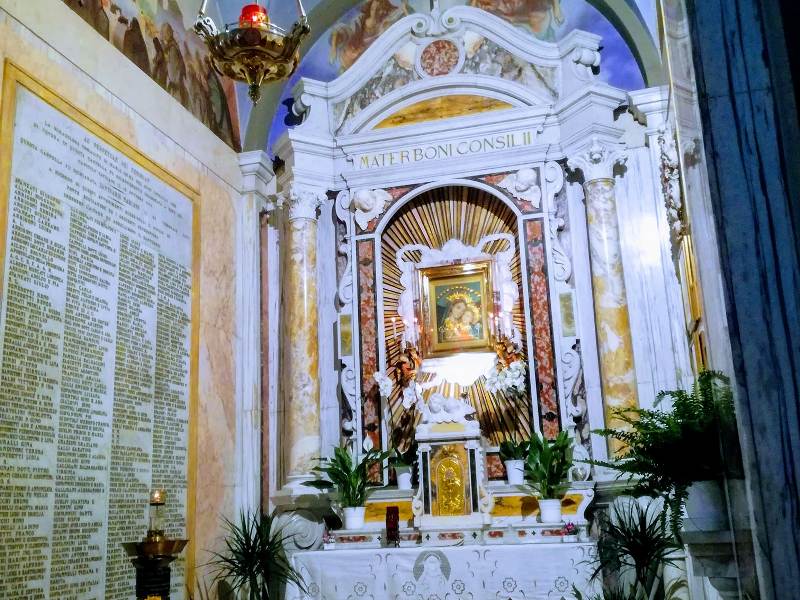 Purtroppo ieri la nostra chiesa è stata visitata dai ladri che hanno rotto il vetro blindato che protegge il quadro di Maria S.S. Madre del Buon Consiglio per rubare le corone e i girocollo della vergine e del bambino. Gli oggetti trafugati non sono d'oro e il danno più grande sarà sicuramente ripristinare il vetro e l'intelaiatura divelti probabilmente te con un piccone. Il quadro non sembra danneggiato gravemente, appena i carabinieri avranno fatto i rilievi e i controlli del caso lo esamineremo più dettagliatamente. Vedere la chiesa ferita in questo modo è doloroso; ci si domanda quando abbiano agito di preciso e come. La nostra chiesa è aperta per tutto il giorno per favorire la possibilità di pregare; hanno sfruttato uno dei momenti in cui nessuno era presente. Ringraziamo Dio che i ladri non abbiano procurato danni al tabernacolo o fatto qualche gesto sacrilego.