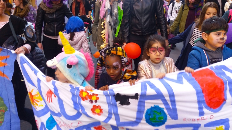 I bambini e le bambine hanno indossato le ali indomabili fatte durante i Laboratori Uccelli Migratori di Arciragazzi-Pisa che hanno preceduto l'evento, mostrando una netta determinazione a voler mettere il” becco” in questo loro presente.
