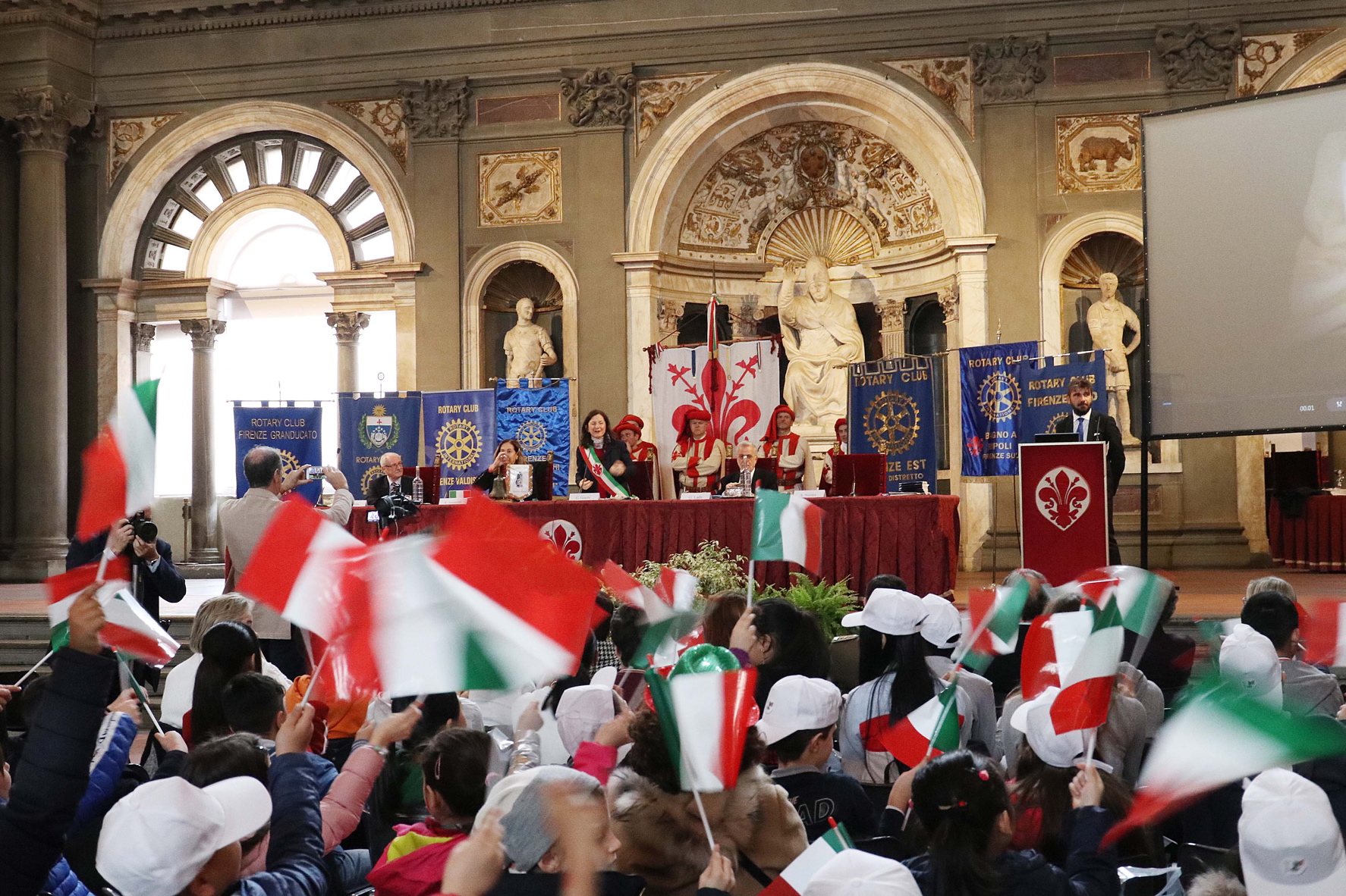 Una festa in onore del Tricolore con i ragazzi delle scuole. Questa mattina, nel Salone dei Cinquecento di Palazzo Vecchio, si è svolta la giornata conclusiva del progetto dei Rotary Club Firenze Nord dell'Area Medicea: la premiazione del concorso rivolto agli studenti delle scuole secondarie di primo grado. ll progetto era inserito ne 'Le Chiavi della Città', il pacchetto di iniziative e progetti formativi che l’assessorato all’educazione offre ai ragazzi delle scuole dell’infanzia, delle primarie e delle secondarie di primo e secondo grado, in collaborazione con Ente Cassa di Risparmio di Firenze (Portale Ragazzi.it).