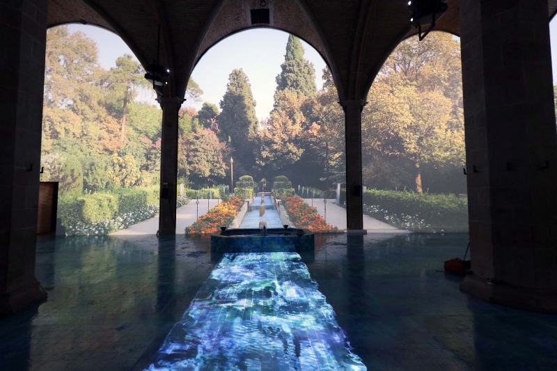 Nella tradizione persiana, il Pardis è il giardino antistante la casa, spesso realizzato in una oasi in mezzo al deserto, in cui il viandante riceve ospitalità e sollievo. Il Pardis di Tannaz è la proiezione del suo vissuto in un luogo e un tempo lontani che sono ancora dentro l’autrice e che tornano alla sua memoria come parte di sé che non ha mai dimenticato, ancora impressa nella sua mente e nei suoi sensi. Così Tannaz Lahiji tira fuori il suo io “più antico” e, da performer quale è, riproduce l’esperienza di quei momenti. La Sala d'Arme sarà, quindi, completamente rivestita di una pavimentazione pittorica realizzata dall'artista, con al centro la costruzione della fontana tipica del Pardis persiano, all'interno di un sistema di videoproiezioni che immergeranno completamente lo spettatore nell'atmosfera evocata dai ricordi dell'artista di quei luoghi. L’installazione riproduce la stessa dimensione che l’artista viveva in quei giardini, con i suoni della natura, il canto degli uccelli, l’atmosfera, il senso di pace e l’aria che lei stessa respirava in quel luogo di felicità: il suo paradiso. E propone a Firenze lo stesso contesto ovvero, la stessa dimensione, in modo da offrire anche a noi quell’esperienza, o un’idea ad essa assai vicina. Un posto colmo di bellezza e di amore che Tannaz ha vissuto e che accosta alla profusione di amore e luce descritta nel Paradiso dantesco.
