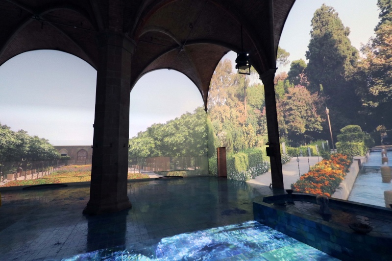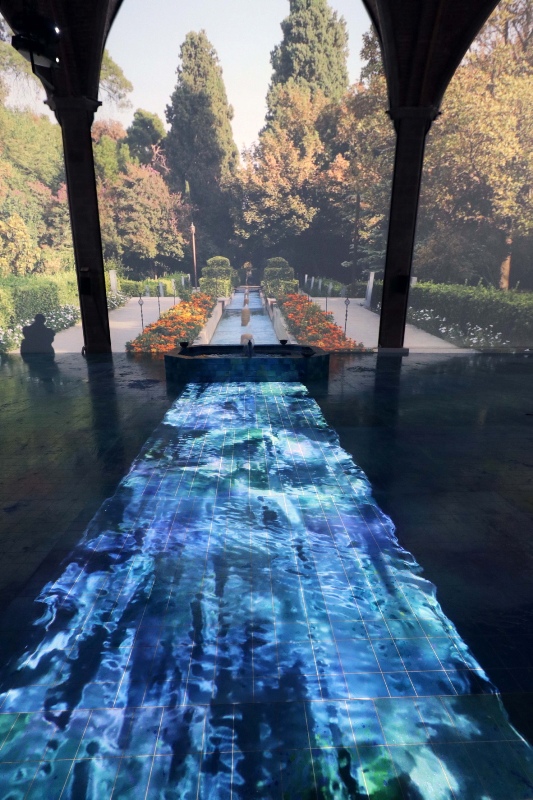 Nella tradizione persiana, il Pardis è il giardino antistante la casa, spesso realizzato in una oasi in mezzo al deserto, in cui il viandante riceve ospitalità e sollievo. Il Pardis di Tannaz è la proiezione del suo vissuto in un luogo e un tempo lontani che sono ancora dentro l’autrice e che tornano alla sua memoria come parte di sé che non ha mai dimenticato, ancora impressa nella sua mente e nei suoi sensi. Così Tannaz Lahiji tira fuori il suo io “più antico” e, da performer quale è, riproduce l’esperienza di quei momenti. La Sala d'Arme sarà, quindi, completamente rivestita di una pavimentazione pittorica realizzata dall'artista, con al centro la costruzione della fontana tipica del Pardis persiano, all'interno di un sistema di videoproiezioni che immergeranno completamente lo spettatore nell'atmosfera evocata dai ricordi dell'artista di quei luoghi. L’installazione riproduce la stessa dimensione che l’artista viveva in quei giardini, con i suoni della natura, il canto degli uccelli, l’atmosfera, il senso di pace e l’aria che lei stessa respirava in quel luogo di felicità: il suo paradiso. E propone a Firenze lo stesso contesto ovvero, la stessa dimensione, in modo da offrire anche a noi quell’esperienza, o un’idea ad essa assai vicina. Un posto colmo di bellezza e di amore che Tannaz ha vissuto e che accosta alla profusione di amore e luce descritta nel Paradiso dantesco.