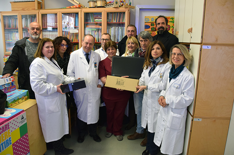 Una donazione molto importante per l’attività quotidiana della scuola ospedaliera dell’Azienda ospedaliero-universitaria Senese. È quella effettuata dall’agenzia Arcanum Sicurezza Globale, che ha consegnato due pc ed una stampante ai piccoli pazienti del policlinico Santa Maria alle Scotte, che durante il loro periodo di degenza frequentano la scuola ospedaliera, situata all’interno del Dipartimento Materno Infantile. Ad accogliere la donazione, consegnata dal direttore dell’agenzia Graziano Bartoccini, il direttore del Dipartimento Materno Infantile professor Mario Messina, il professor Salvatore Grosso, direttore della UOC Pediatria, la coordinatrice infermieristica Giuliana Masiero e tutto il personale docente della scuola.