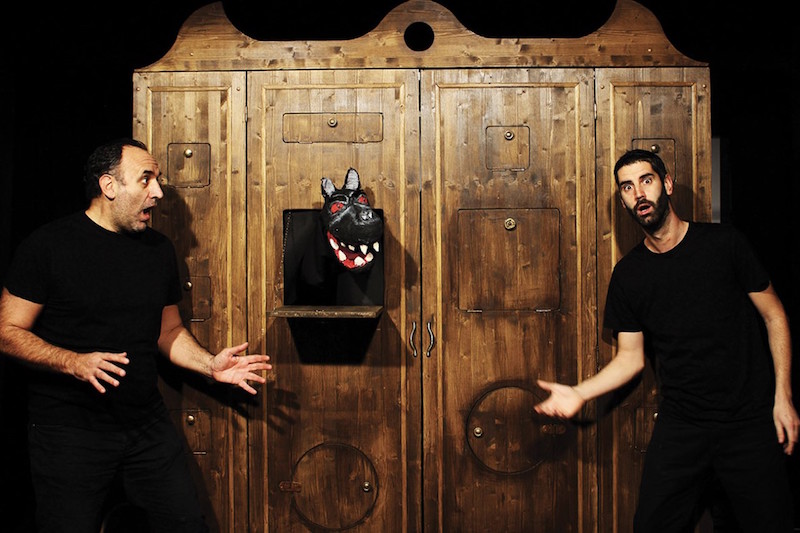 Due attori, spaventati ma curiosi, si avvicinano a uno strano armadio comparso all’improvviso…che cosa ci sarà dentro? Vecchi costumi teatrali? Polverose parrucche? E cosa si nasconde nell’armadio di ogni bambino? Mostri, streghe, marmocchi dispettosi, draghi, principi, fate?