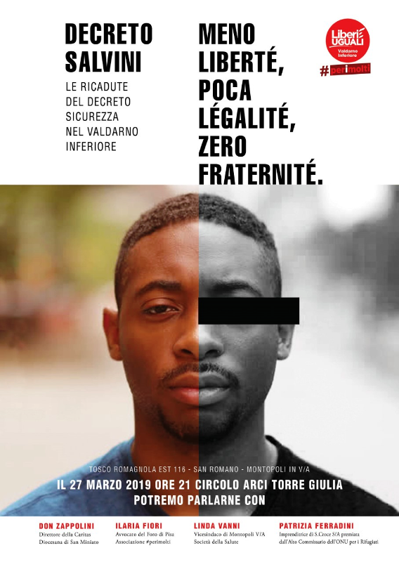 Liberi e Uguali - #perimolti del Valdarno Inferiore, ha organizzato un vento per parlare delle ricadute del Decreto Sicurezza recentemente approvato che si terrà Circolo ARCI 'Torre Giulia' – S.Romano, in programma mercoledì 27 marzo alle ore 21.