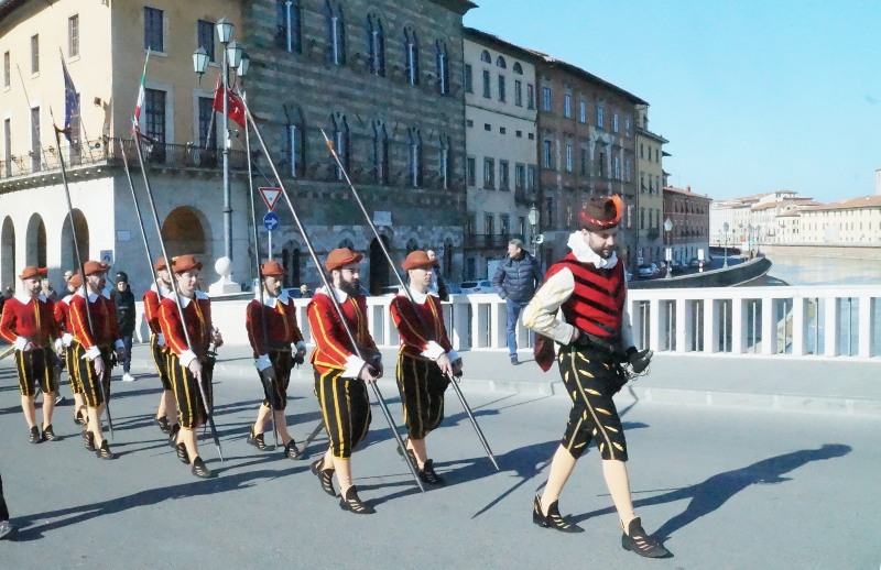 Dalle ore 10.00 infatti, sono in programma visite guidate alle Mura di Pisa, con partenza dalla Torre Piezometrica (ex-Marzotto, tra via Buonarroti e via Vittorio Veneto) dal titolo “Le tre età di Pisa, il Capodanno Pisano e il computo del tempo”, con prenotazione consigliata fino a esaurimento dei posti disponibili. Dalle ore 16.00 sfileranno per le strade del centro storico gruppi di sbandieratori di Pisa e provincia, con i figuranti del Gioco del Ponte e delle Antiche Repubbliche Marinare per l’annuncio del Capodanno, “Bandiere al vento per il Capodanno Pisano”.