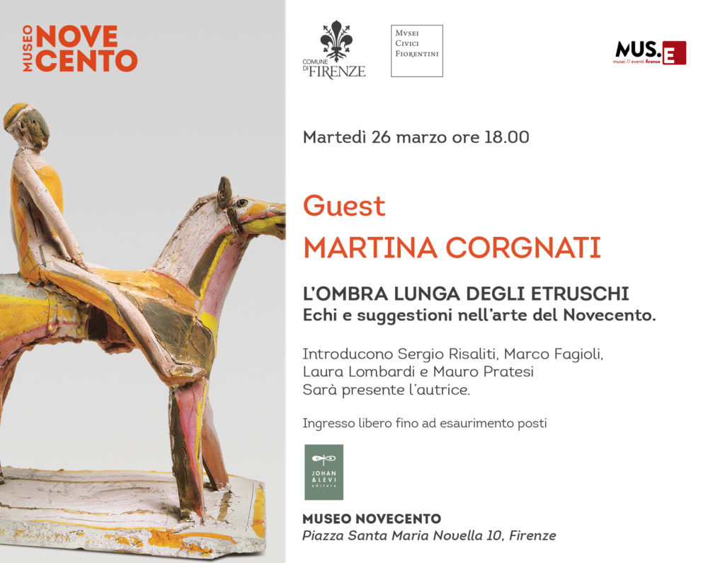 Il mito etrusco ha avuto alterne fortune, vittima di un pregiudizio di inferiorità nei confronti della civiltà greco-romana, ma oggetto di un processo di riscoperta che ne ha fatto un concetto di “antico” alternativo all’ideale classico. Per approfondire questo tema, indagando l’eredità della cultura etrusca nel lavoro di artisti attivi tra la fine del XIX secolo e gli anni ottanta del Novecento, martedì 26 marzo alle 18 il Museo Novecento ospita la presentazione del libro di Martina Corgnati L’ombra lunga degli etruschi. Echi e suggestioni nell’arte del Novecento(Johan & Levi Editore) che per l’occasione sarà affiancata da Laura Lombardi e Mauro Pratesi e dal direttore artistico del Museo, Sergio Risaliti, che modererà l’incontro.