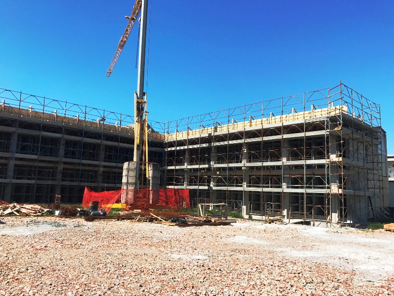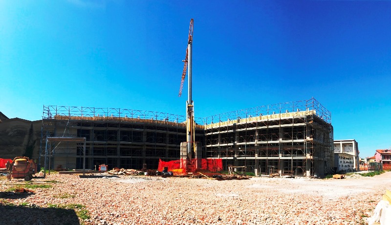 Ad oggi i lavori (partiti a giugno 2018) rispettano i tempi contrattuali. Sono stati realizzati la struttura portante in cemento armato, i solai del primo piano e di copertura.
