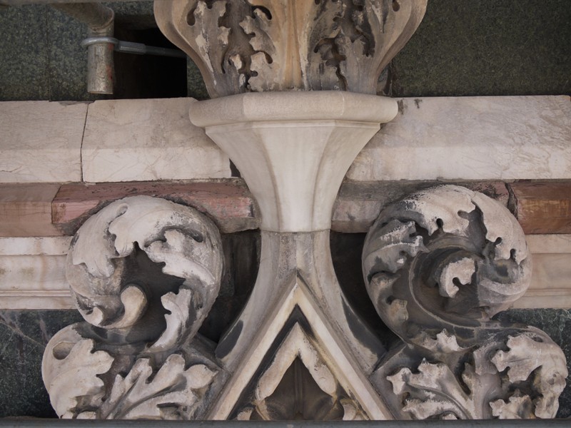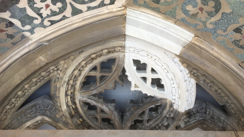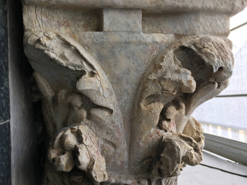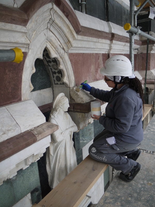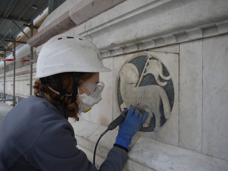 L’intervento di restauro, eseguito dalla ditta Leonardo srl su commissione dell’Opera di Santa Maria del Fiore, ha previsto operazioni di preconsolidamento, pulitura, consolidamento, rimozione di stuccature non più idonee e rifacimento di nuove stuccature. Le operazioni di pulitura, definite con accurate prove necessarie anche per determinare il tempo di contatto con la superficie marmorea, hanno visto l’alternarsi di varie metodologie per ogni tipologia di degrado presente al fine di riportare i marmi ai loro colori originali nel rispetto della patina storica. Per la parte restante della facciata nord, tra cui la Porta dei Cornacchini, i lavori di restauro riprenderanno nel 2020.