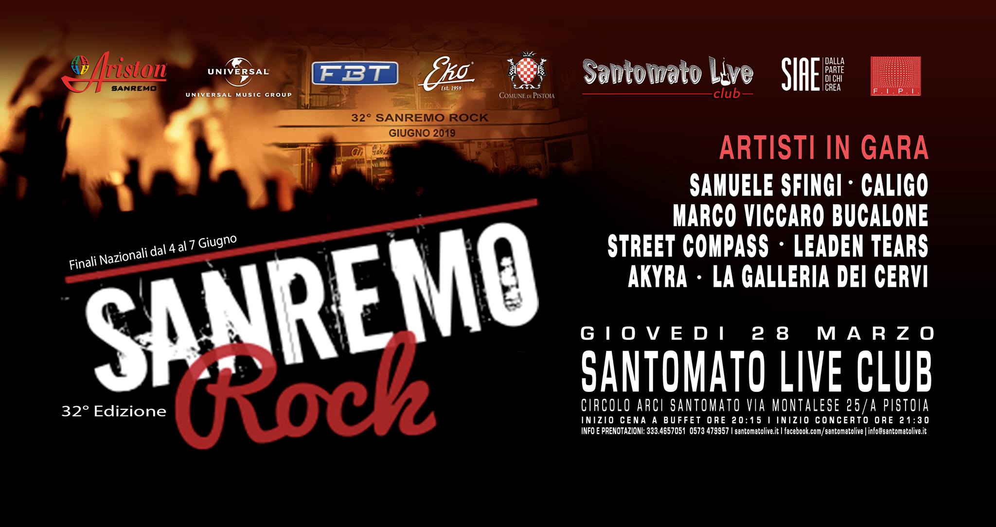 Giovedì 28 marzo le selezioni del 32° Sanremo Rock & Trend Festival, il più ambito concorso nazionale per rocker emergenti tornano in Toscana. Teatro della competizione sarà anche questa volta il prestigioso palco del Santomato Live Club a Pistoia.