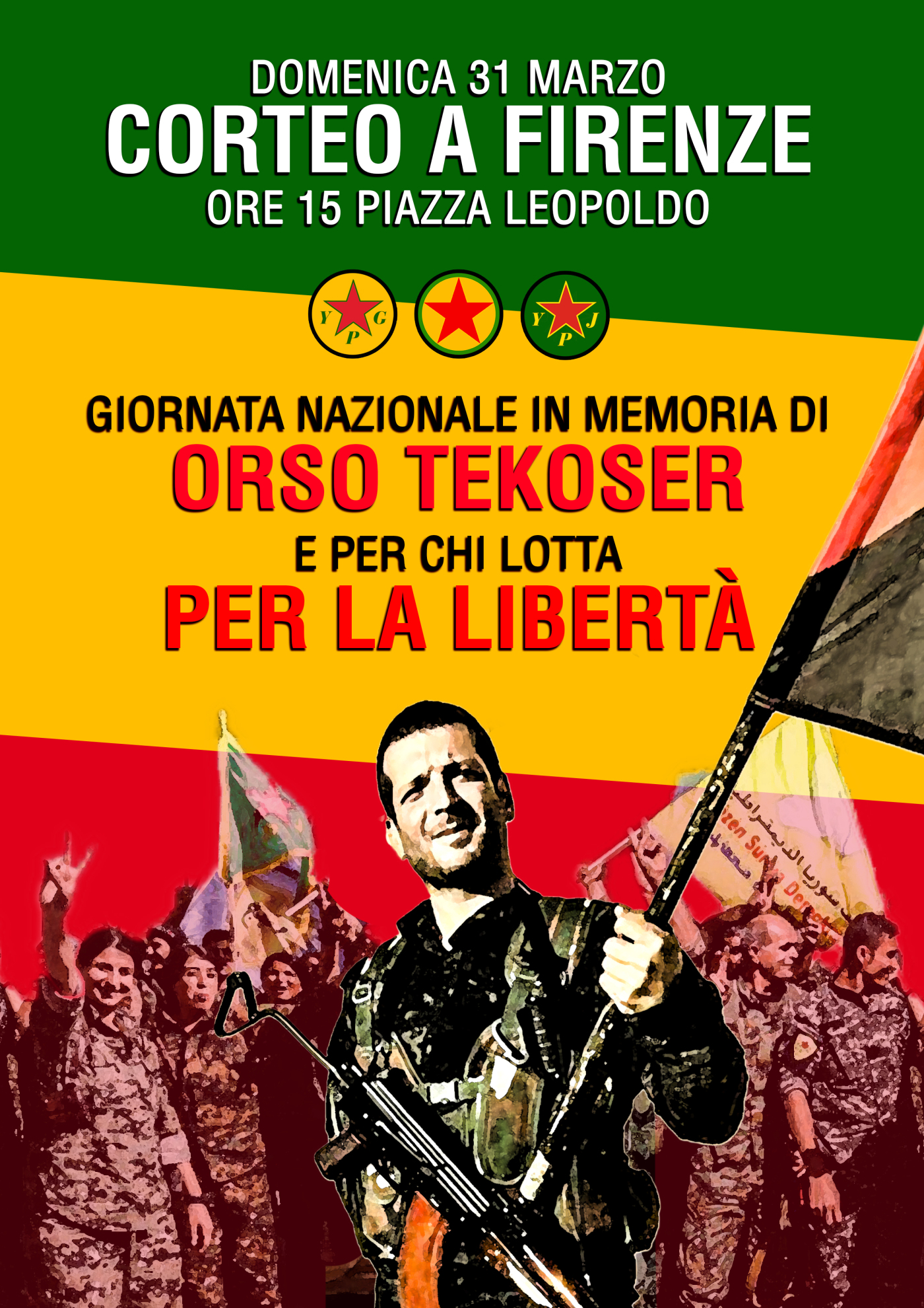 Comodo celebrare oggi Tekoser, mentre chi è andato a combattere in Kurdistan ed è rientrato in Italia è sotto inchiesta, con la sorveglianza speciale, criminalizzato. Facile fare come Nardella che può presenziare ai convegni di Leonardo Finmeccanica, azienda italiana a Firenze venditrice di morte, tra gli altri allo stato turco e al suo governo fascista capeggiato da Erdogan che opprimono quotidianamente i kurdi, e poi mostrarsi affranto per il “valoroso” concittadino ucciso. Ucciso in nome della stessa ideologia di morte e sfruttamento dei nostri governanti, quella ideologia che Tekoser è andato a combattere. Meschino esaltare Lorenzo mentre si arrestano, denunciano, pestano, centinaia di compagni/e, dalla Val Susa alla Sicilia, colpevoli solo di lottare per i suoi stessi valori. Comodo e meschino Salvini che si permette pure di fare le condoglianze..