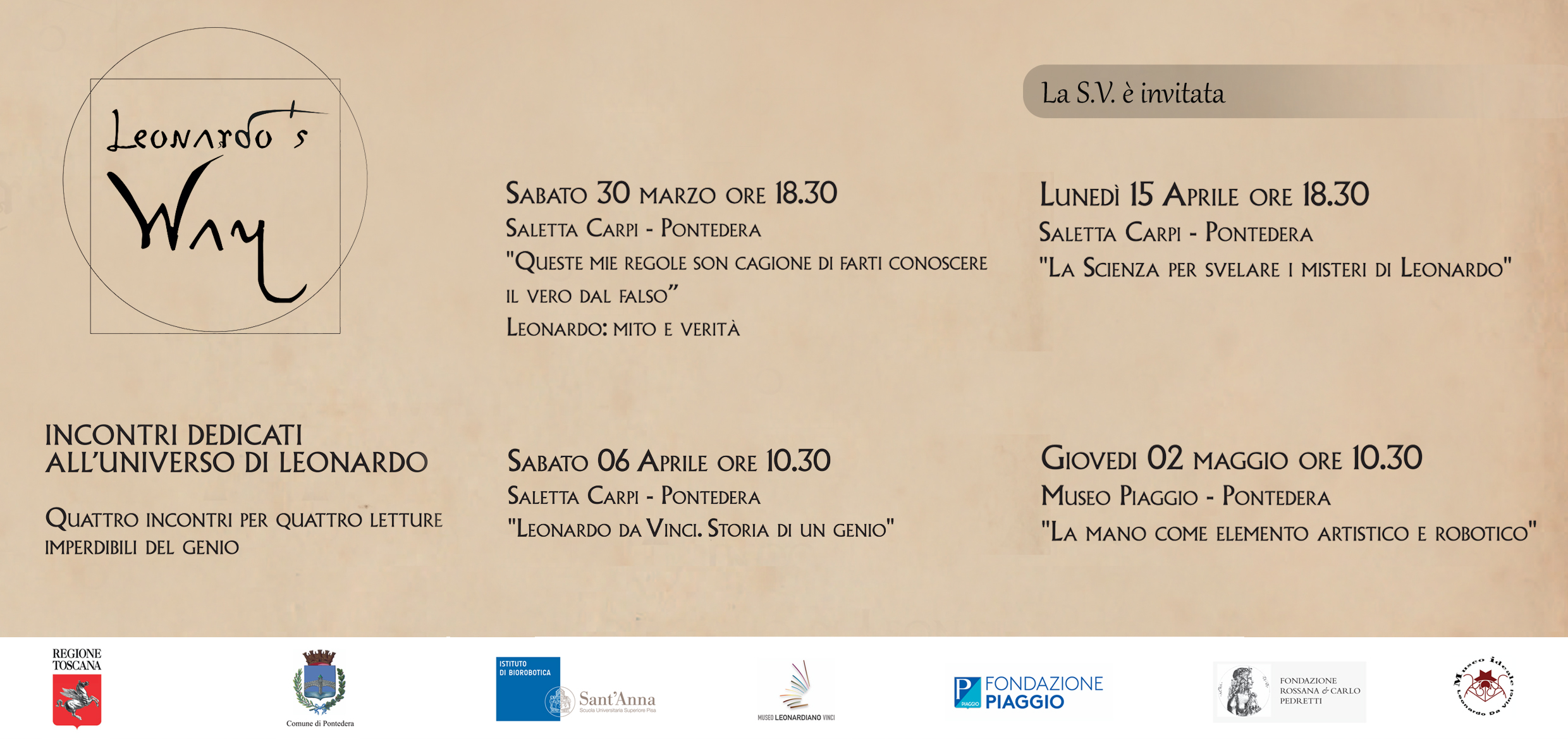 Gli argomenti e le date delle prossime conferenze e tutte le altre iniziative legate alla celebrazioni del cinquecentenario della morte di Leonardo possono essere seguite su @leonardosway su Instagram